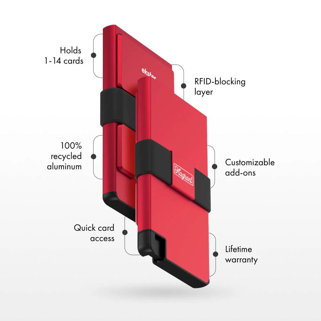 SLIM YOUR POCKETS, PROTECT YOUR CARDS, AND FLEX BOLD LIMITED EDITION CONFIDENCE WITH INSTANT POP UP ACCESS AND MILITARY GRADE SECURITY IN THE FLAGRANT X EKSTER WALLET.